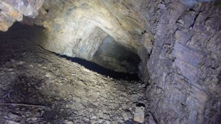 まずは、昭和鉱山奥山坑へ向かう途中で以前に見つけた、レールの残るマンガン採掘跡を確認します。