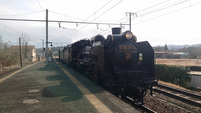 和銅黒谷駅に着いたら、丁度蒸気機関車がやってきました。