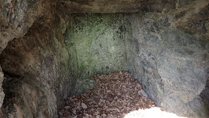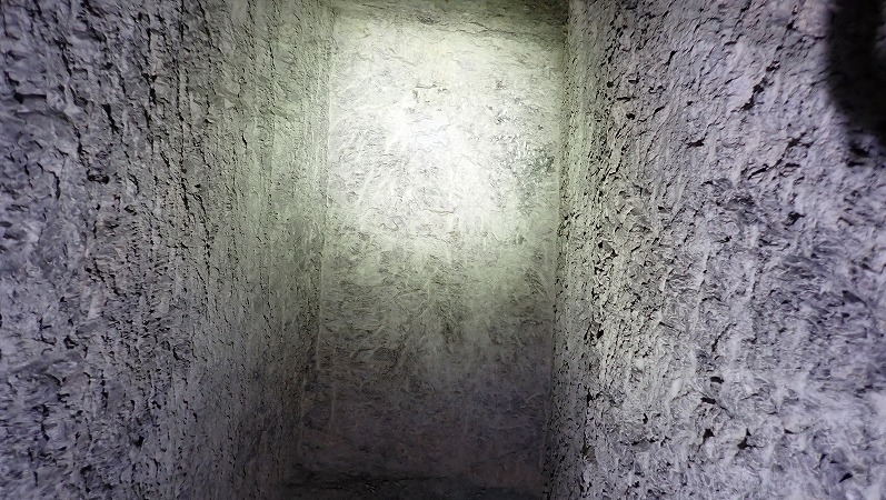 ロウソクでも立てたのか、壁面には物を置くにはちょうど良い窪みも作られています。