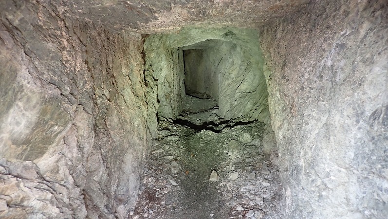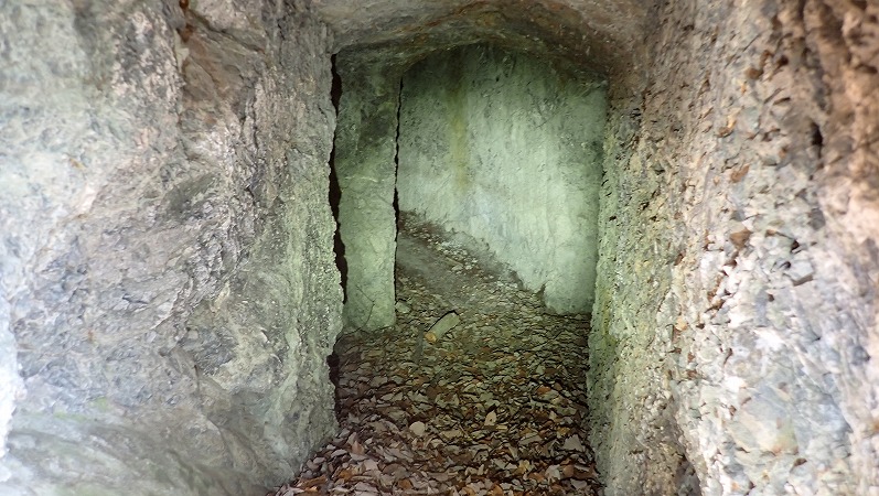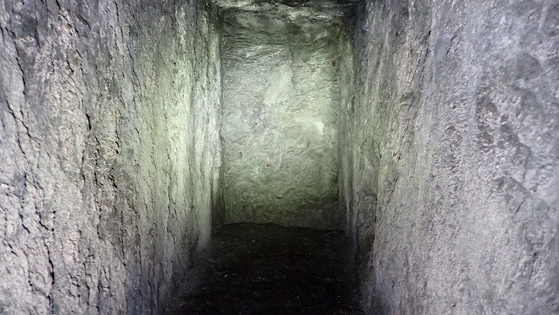 先ほどの坑道より少し長いですが、この坑道もそれほど深くはないですね。