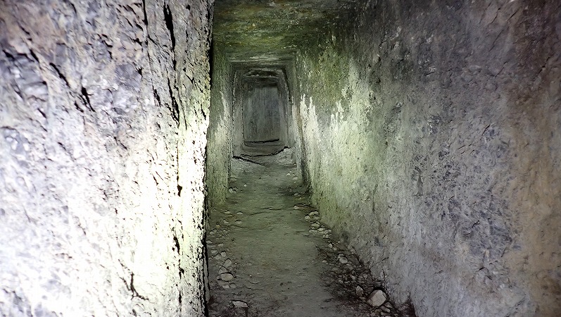 すこし左右に曲がりつつも、分岐は見当たらずまっすぐに掘られています。