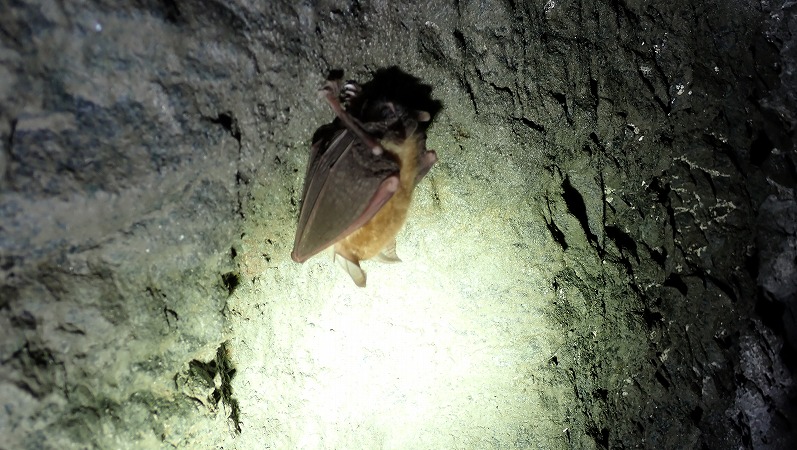 この坑道は所々コウモリがいます。