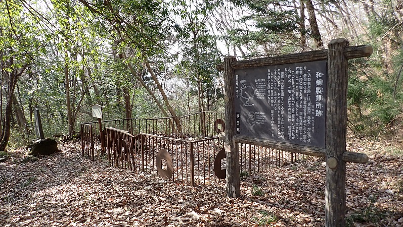 ふるさと歩道を黒谷駅から瑞岩寺方面に約二十分、更に金山区内で標識「和銅精錬所跡」方面に山道をたどること二十分あまりで、秩父市の史跡に指定された「黒谷の精錬所跡」にいたる。