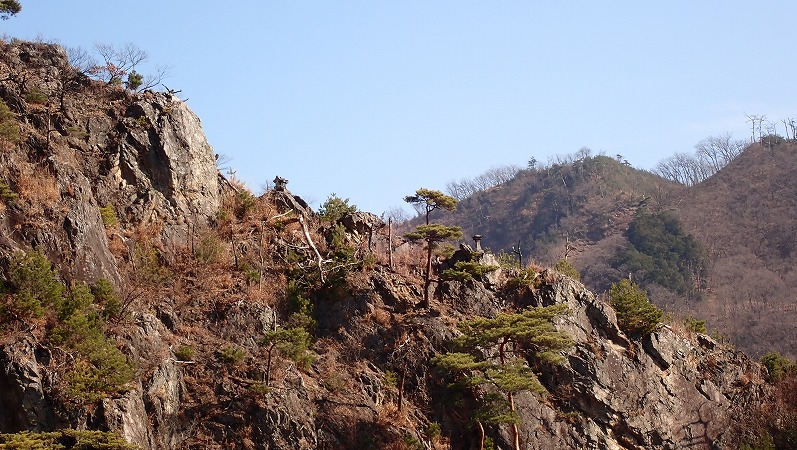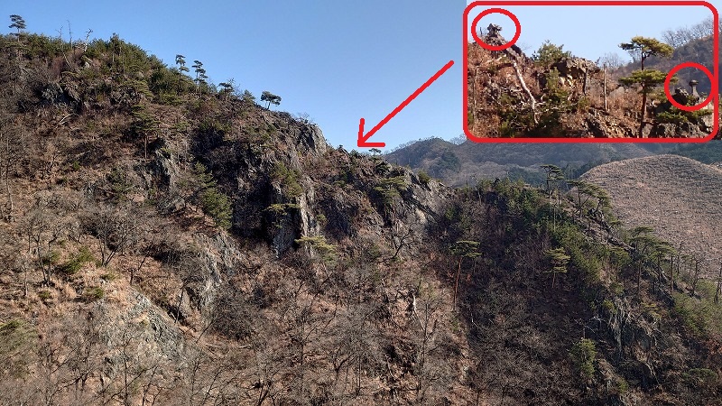 そんな岩を眺めていると、尾根上に複数の何かが見えます。