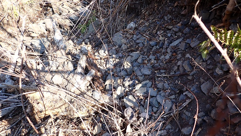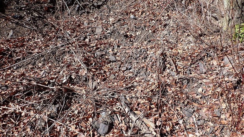ズリ石らしき黒い石の混じる斜面が出てきました。