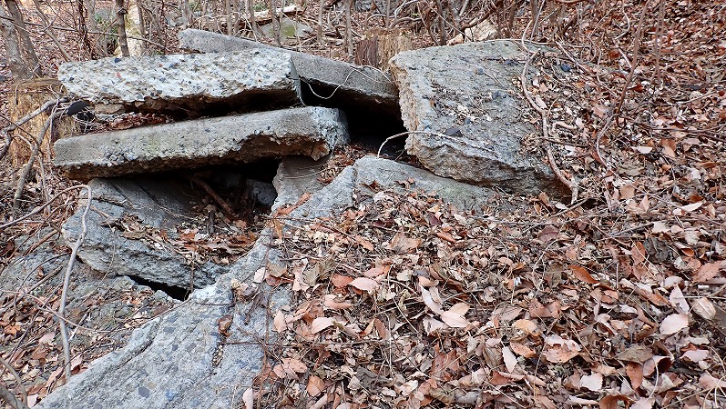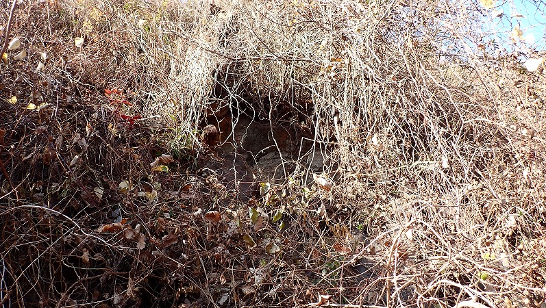 伐採した杉などが詰め込まれていますが、穴が有りそうな感じです。