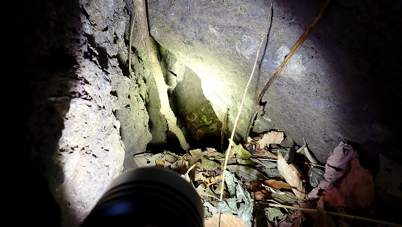 ライトを付けて覗き込んだら、坑口が有り奥に続いているので、どうやらここが唐沢坑と思われます。