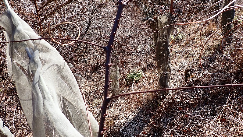 この藪の中にも例のトゲの木が多数紛れているので注意しながら進みます。