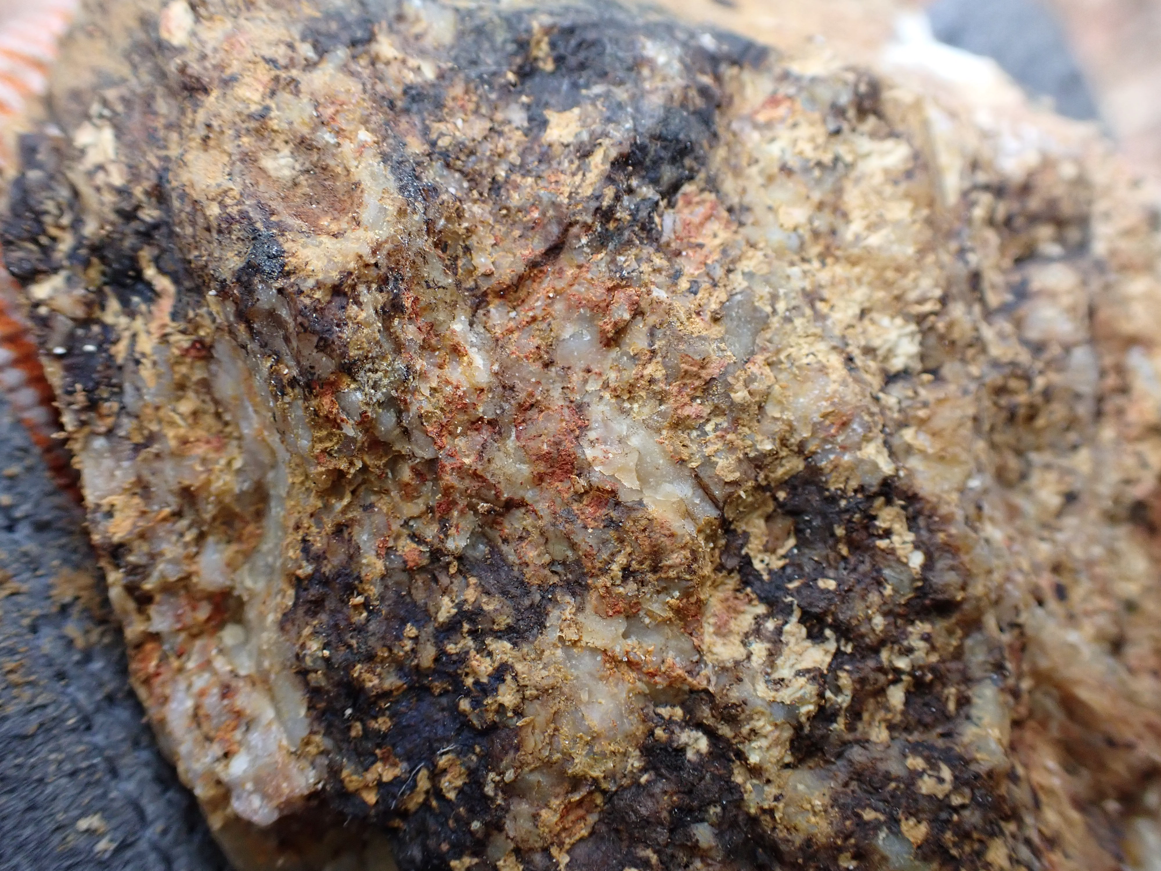ここからは北側の尾根沿いに下山し次の目的地に進もうと歩いていたところ、予想していなかったマンガン採掘跡を発見します。