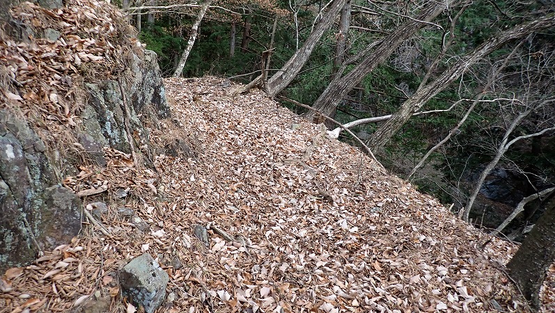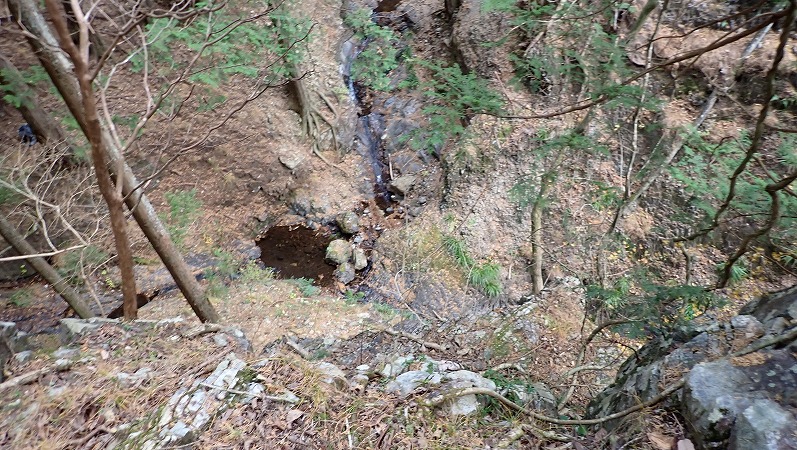 滑ったら沢まで落下します。