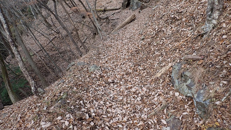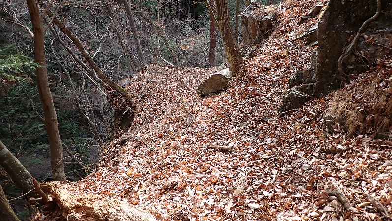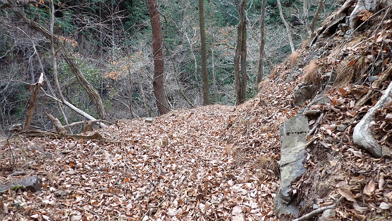 枯葉で埋もれてはいますが、道が続いています。