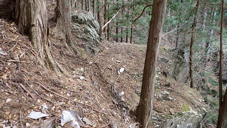 ここは明らかに岩を削って道を作っていますね。