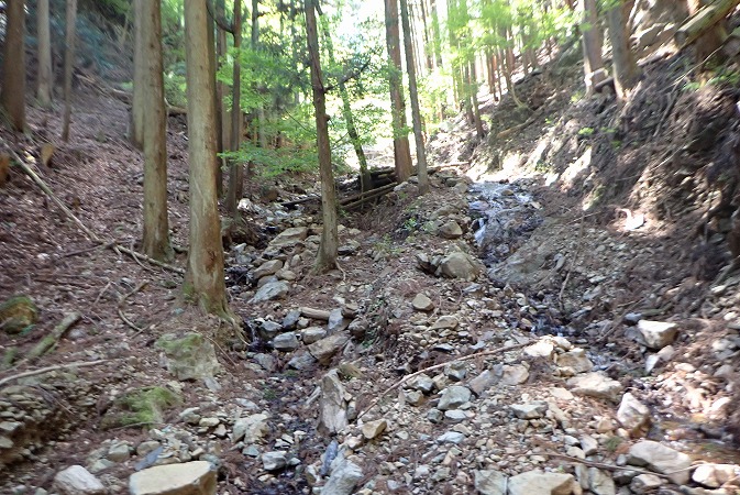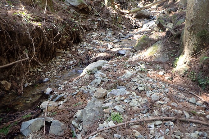 途中からは林道を外れ沢沿いを歩きます。