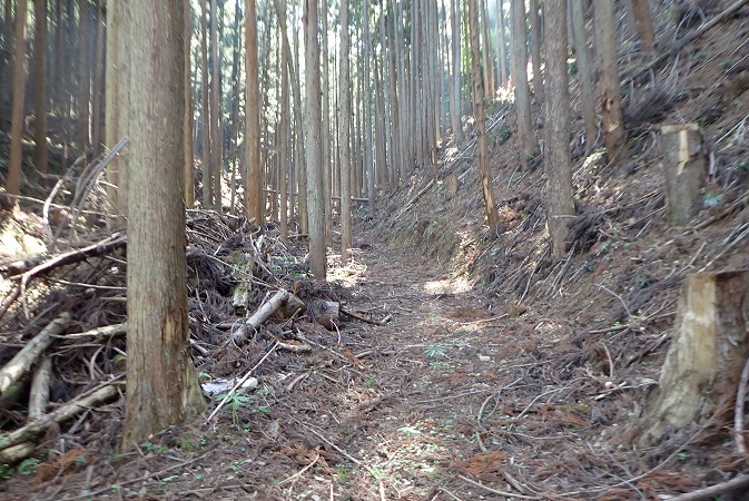 沢沿いに有った林業の作業道を進んでみます。