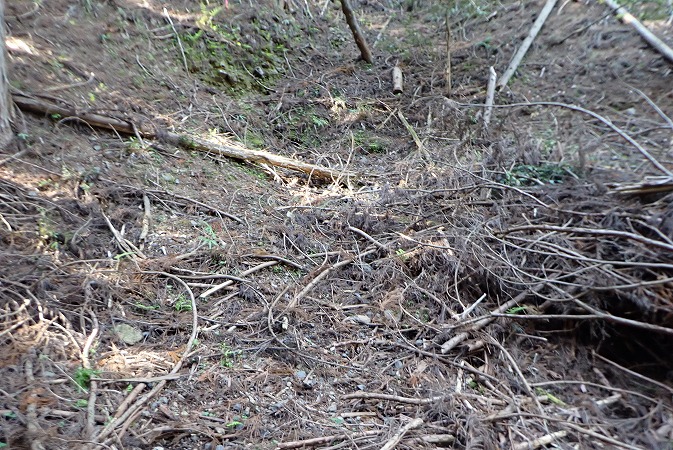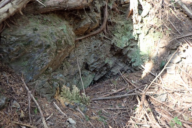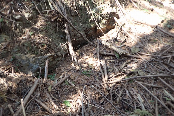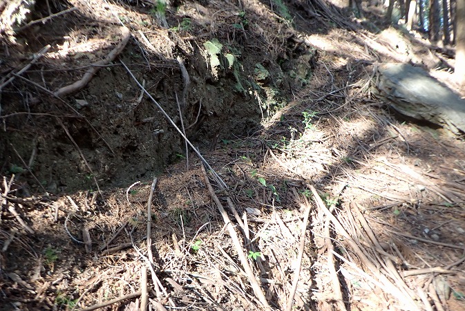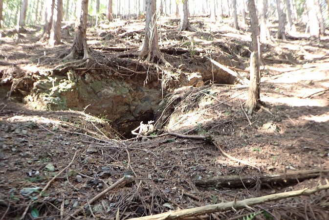 林道を少し進むと、陥没したような地形が有ります。