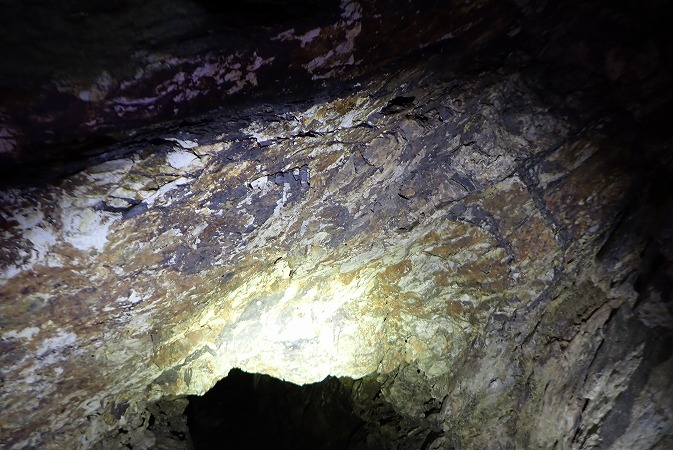 坑口付近の岩盤を見ても、マンガンは少ししか見られず。