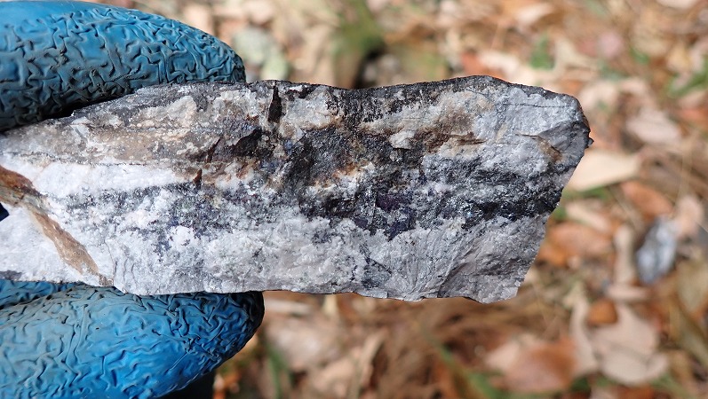 ピンぼけですが、小さい黄鉄鉱の脈。