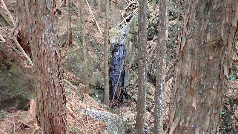 途中まで登ってみましたが、濡れた岩場に積もった落ち葉、さらには崖が急すぎて穴まではたどり着けず。