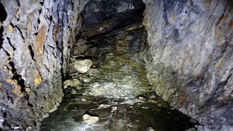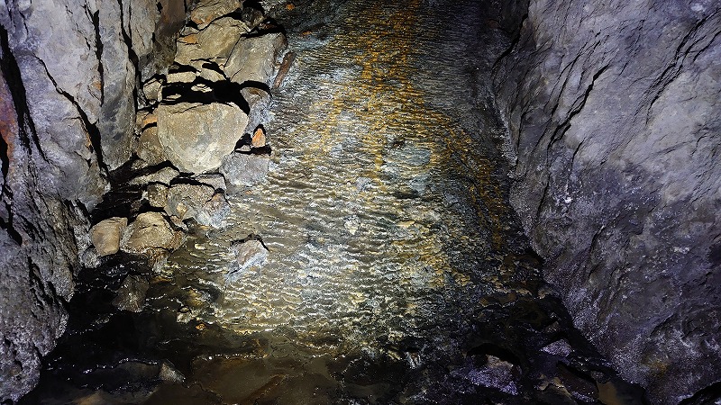今回は長靴を履いてきているので、水が溜まっていて今まで入らなかった、木製レールのある坑道の調査がメインとなります。