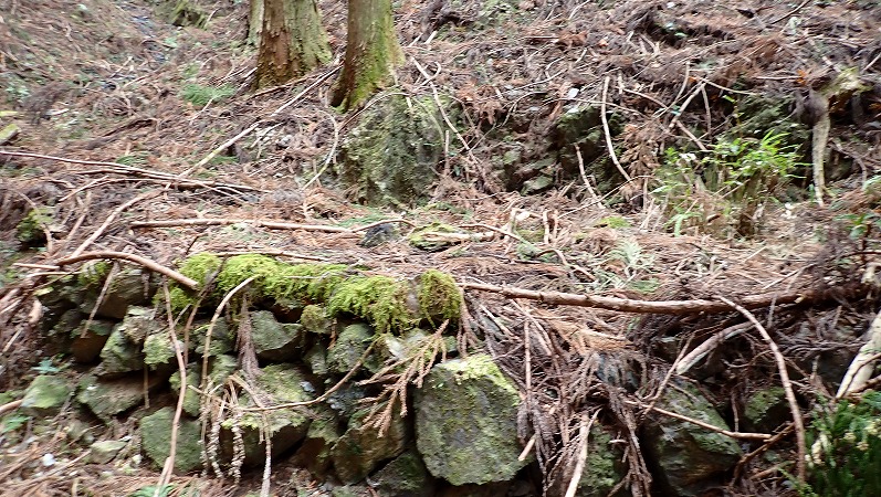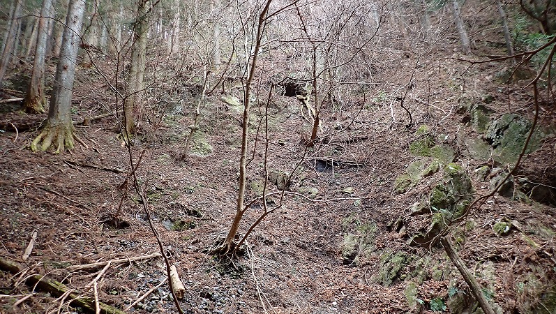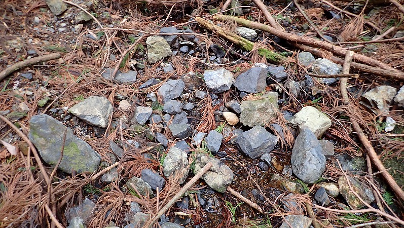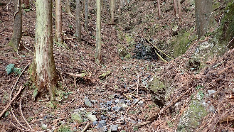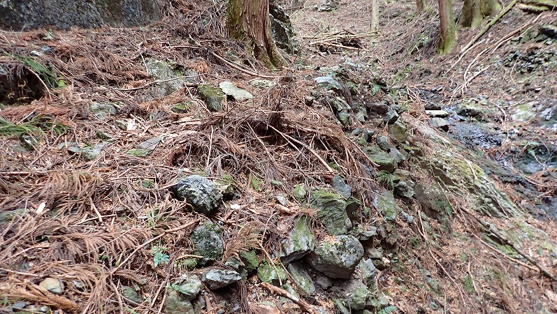 分かりにくいですが、沢沿いには鉱山道路跡と思われる石組も見られます。
