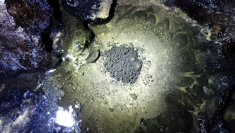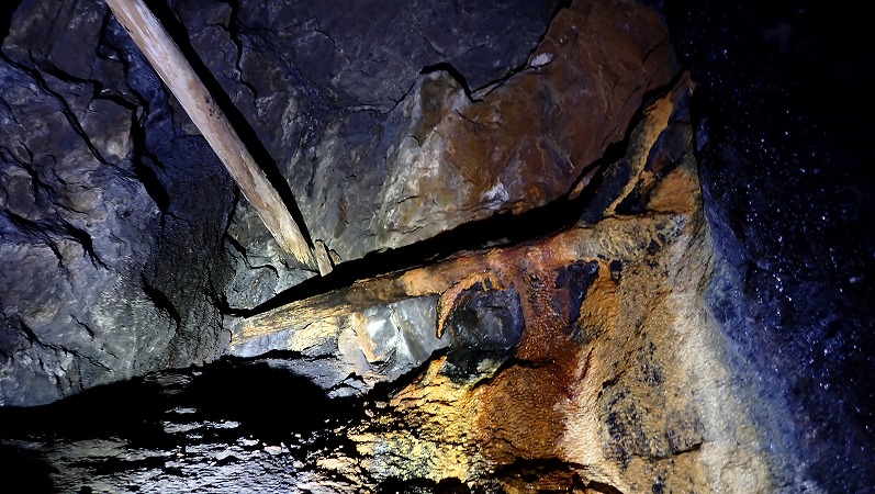 坑道内にはケイブパールならぬマインパールらしき、固まったマンガンと思われる物が落ちています。