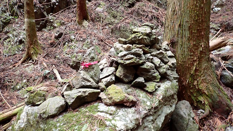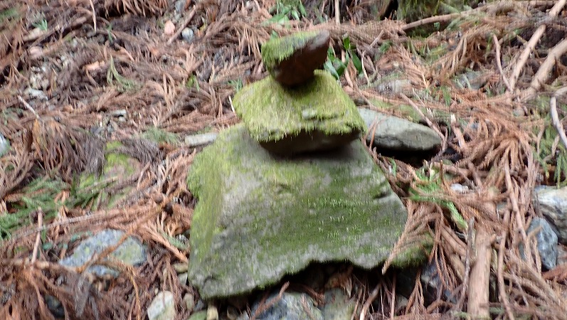 沢沿いには目印のテープとケルンらしき物が有ります。