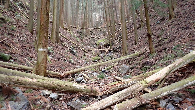 沢の入り口にはイノシシの罠が仕掛けられています。