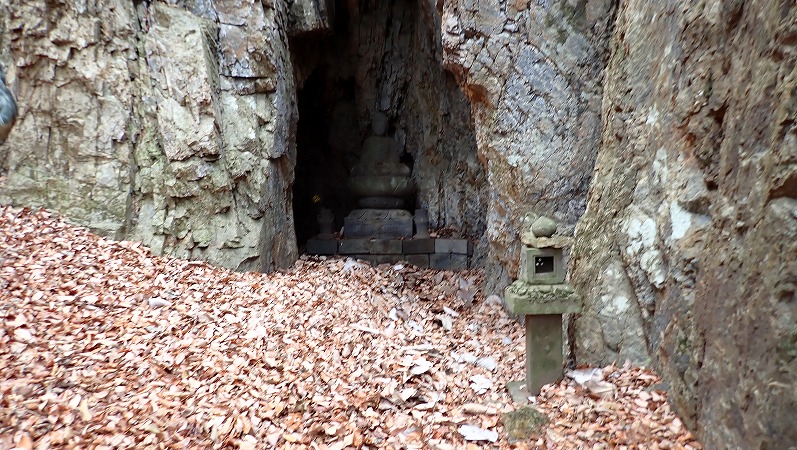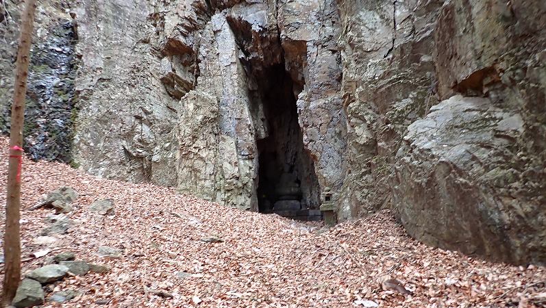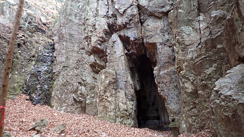 石灯籠を過ぎてから少し登り、諦めかけた頃に茂倉のお釈迦様が居る岩屋が出てきます。