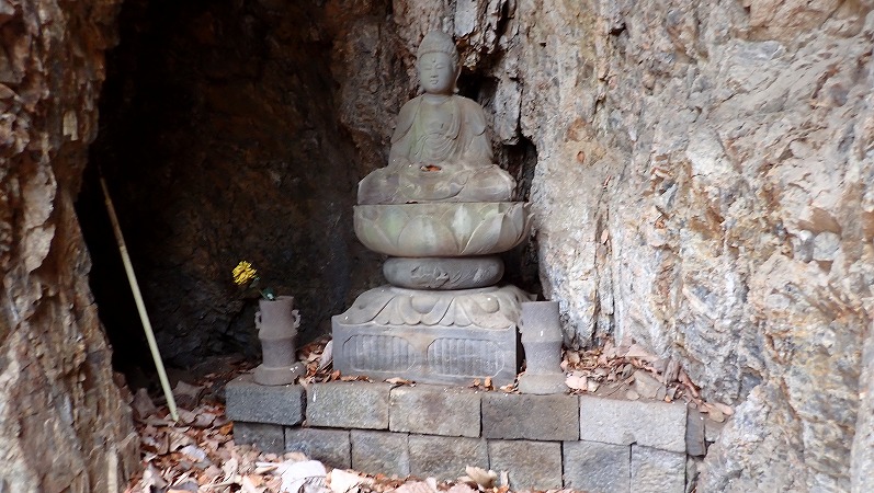 茂倉沢鉱山のむじな坑と思われる鉱山探索後は、茂倉のお釈迦様へと向かいます。
