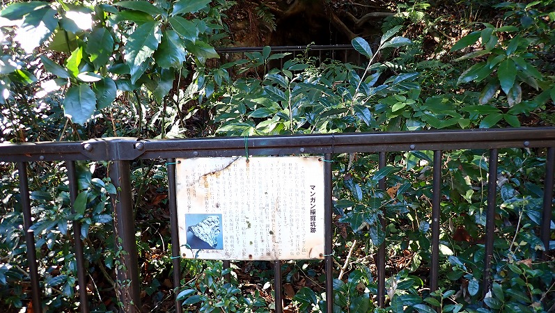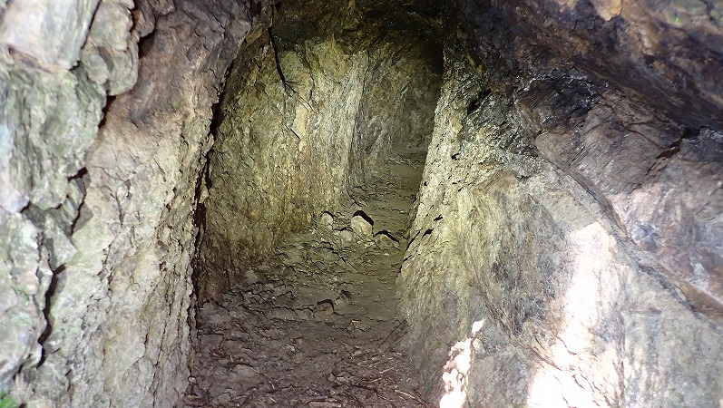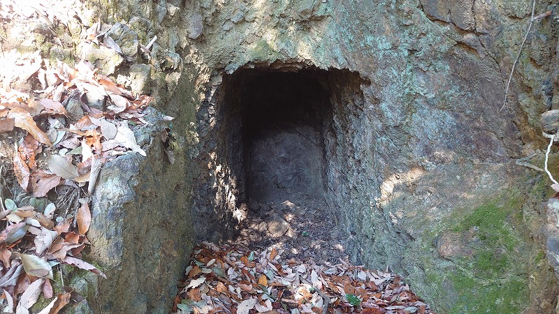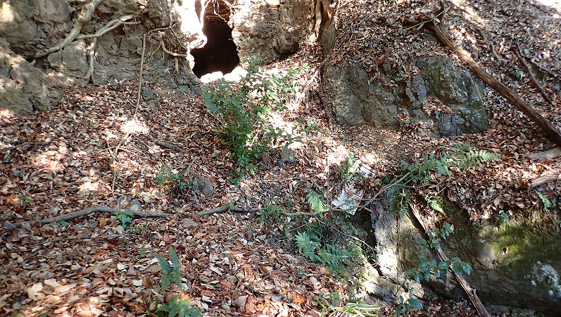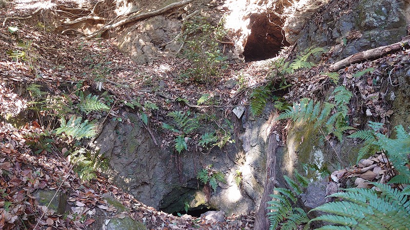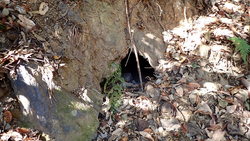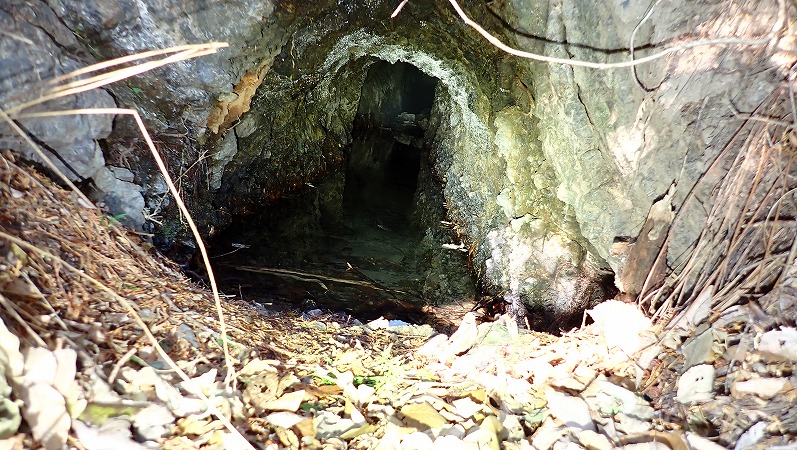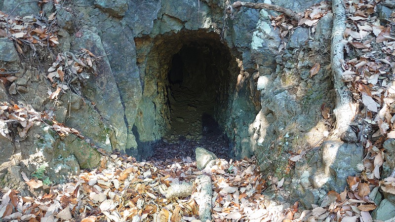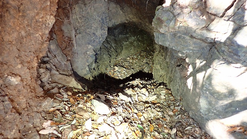 そのまま下って登山道脇のマンガン採掘坑跡へ。
