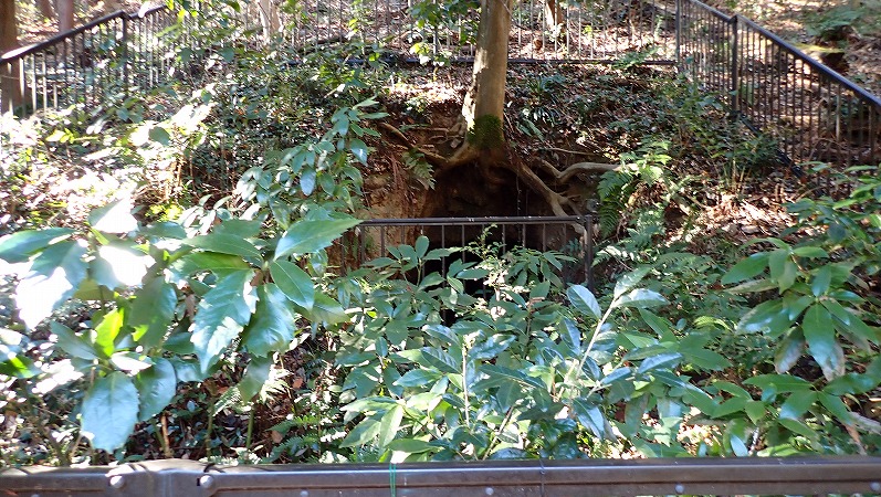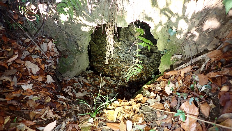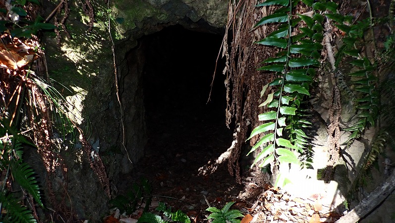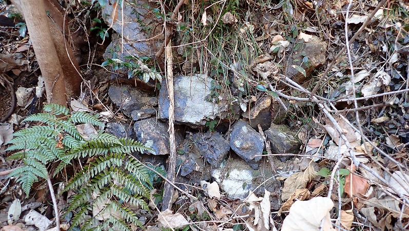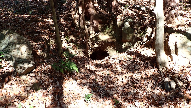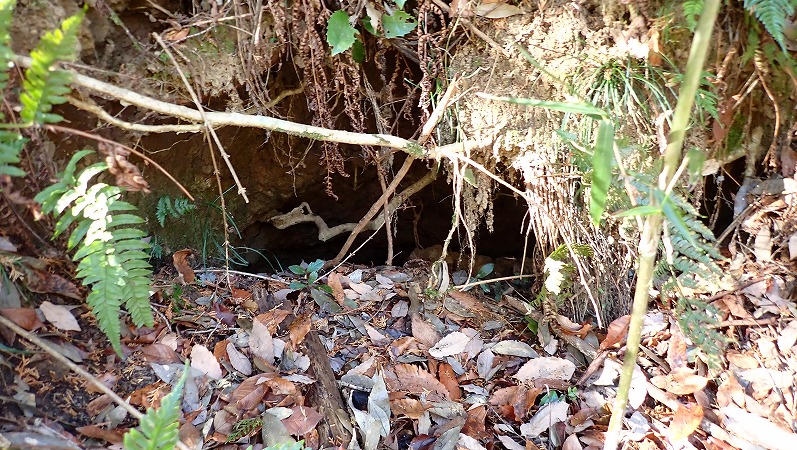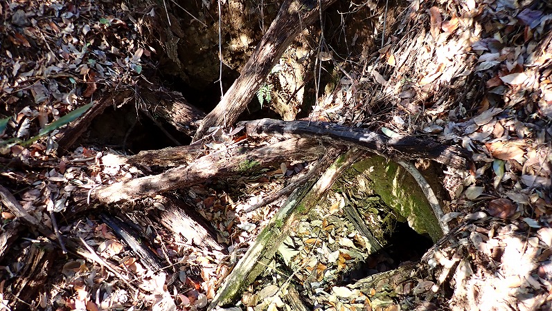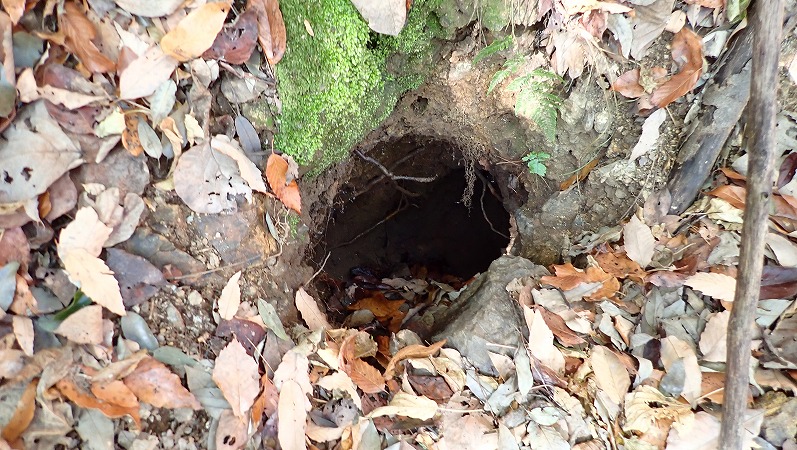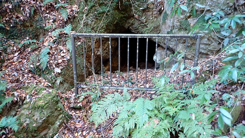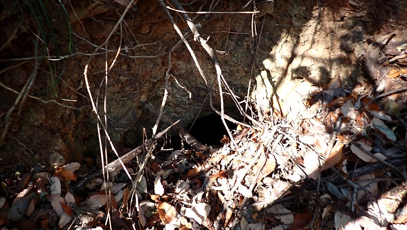 そのまま下って登山道脇のマンガン採掘坑跡へ。