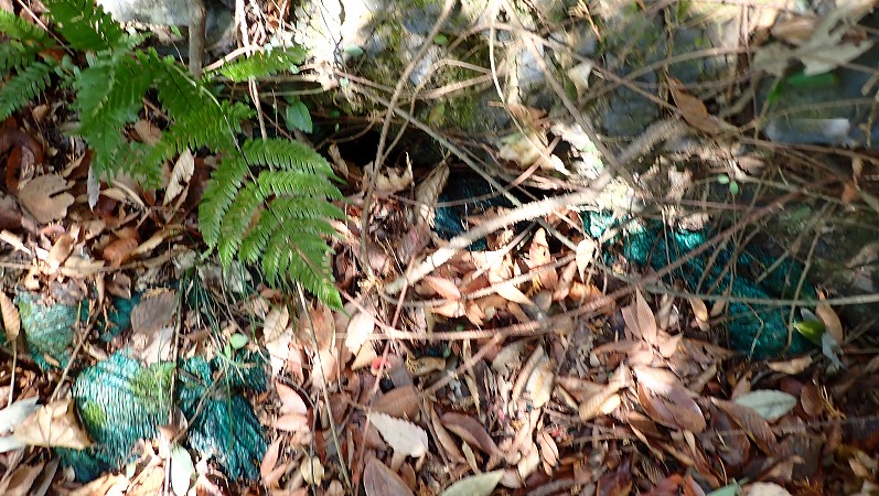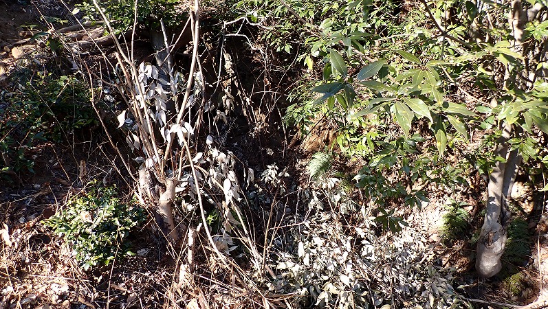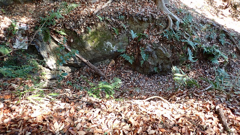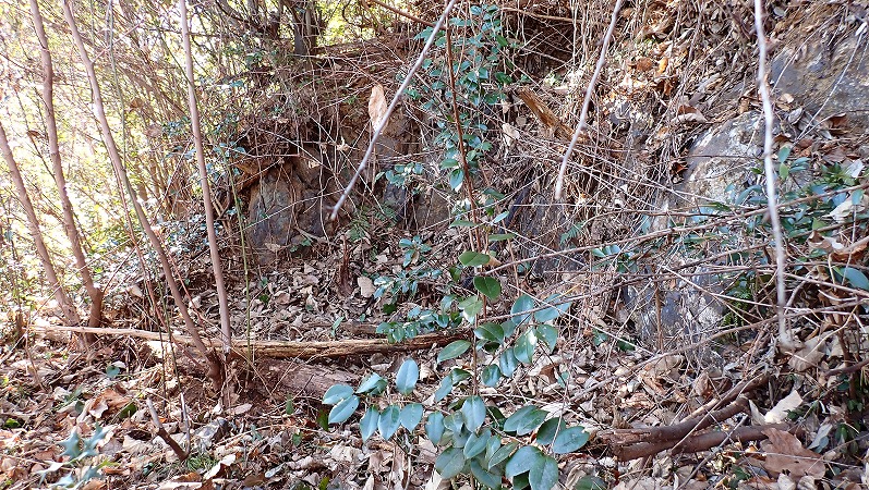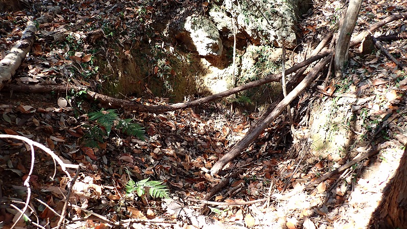 龍崖山の山頂付近にも採掘跡が有るとの事で適当な藪に入ってみます。