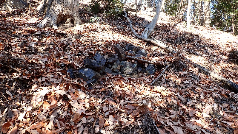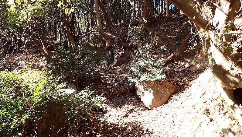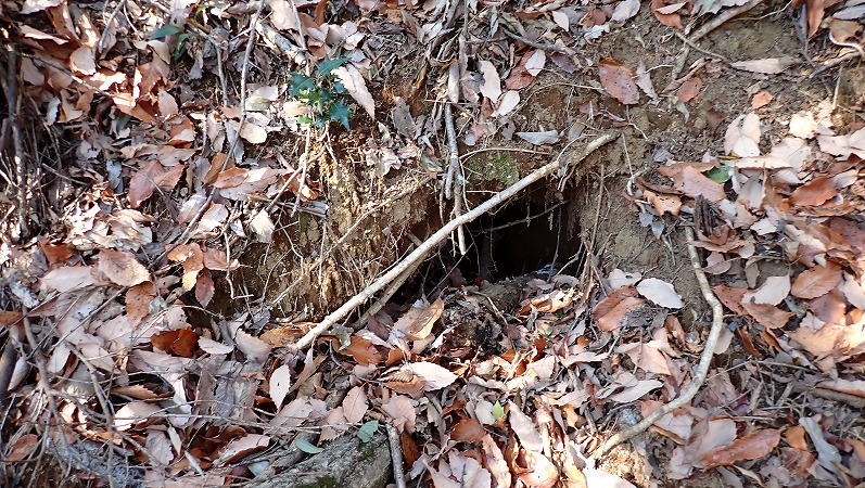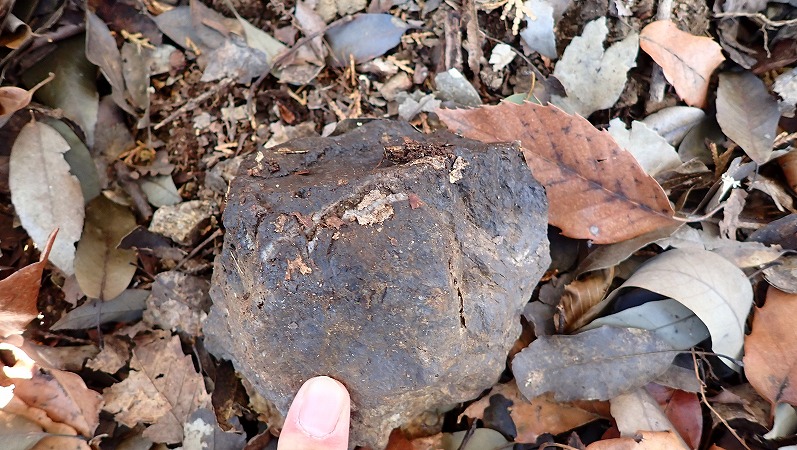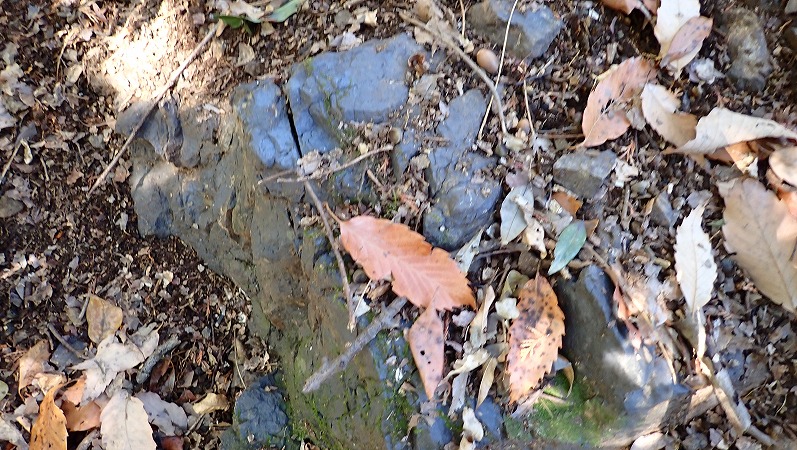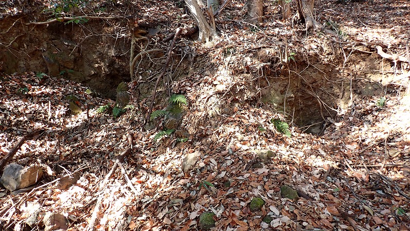 周囲にはマンガンを含んだ黒い石が落ちていたので、軽く掘った跡の様です。