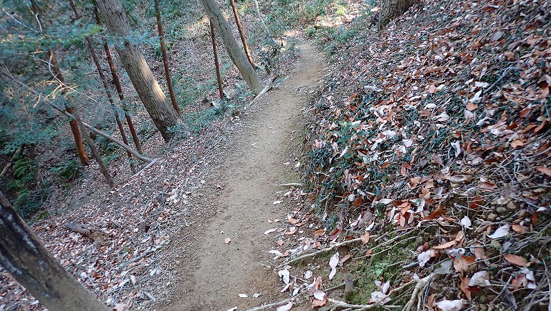 そのまま尾根を登っていたら、少し前に歩いた登山道と合流したので、登山道を下ります。