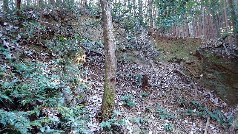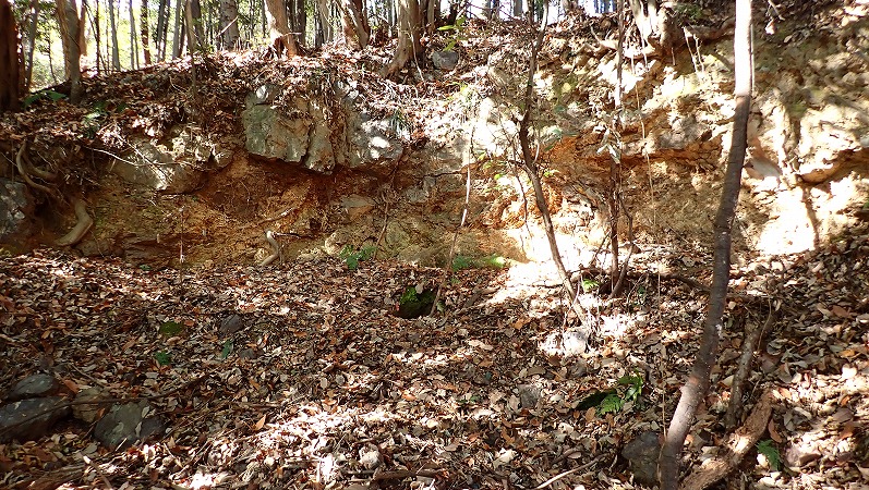 ここは崖が崩されており、露天掘り跡っぽいです。