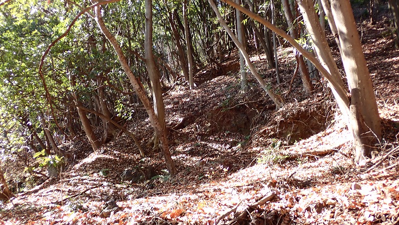 登山道脇にはマンガン採掘跡と思われる穴が多数見られます。