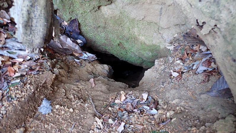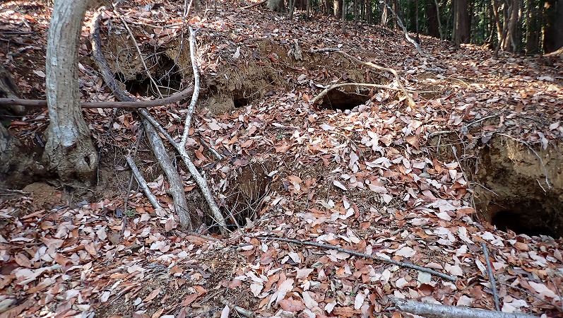 ちょっと登ると多数の穴。こちらは残念ながら土の場所に掘られているので動物のねぐらの様です。