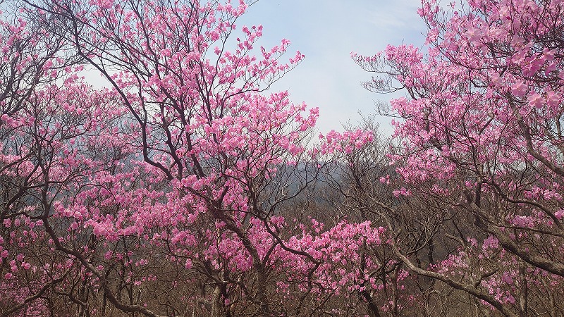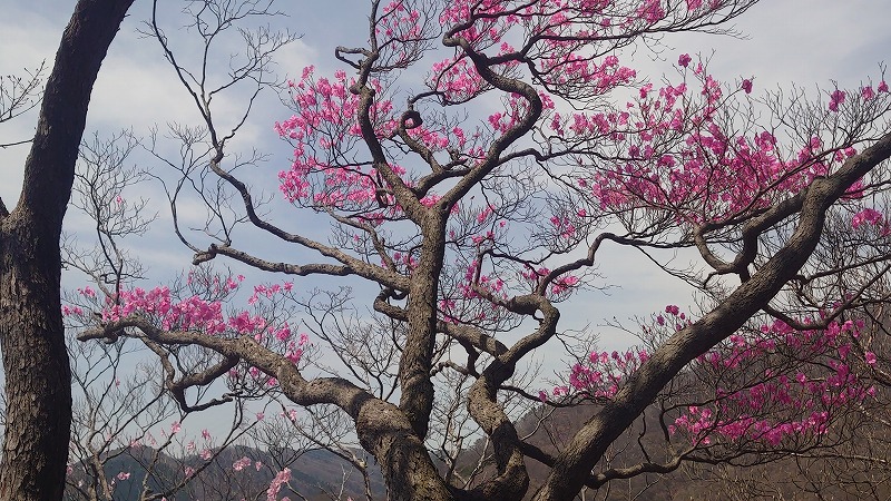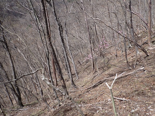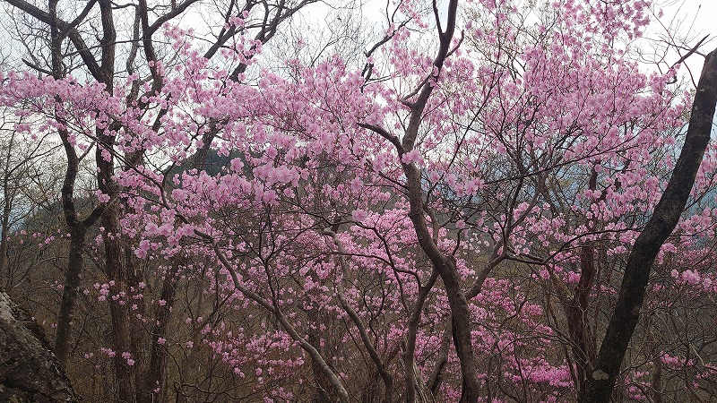 昭和鉱山奥山鉱床に向かう尾根沿いは、アカヤシオがたくさん生えており丁度満開。