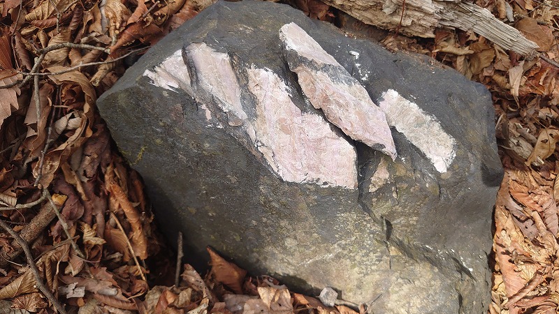 大きな岩も大体バラ輝石。