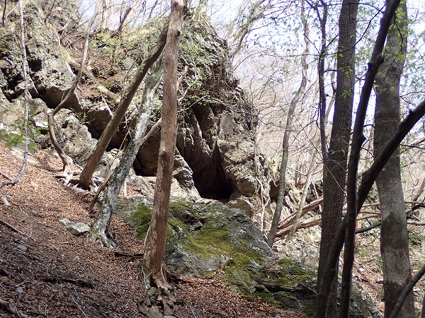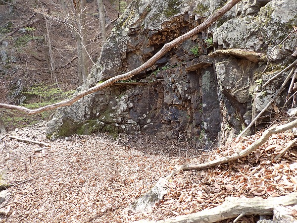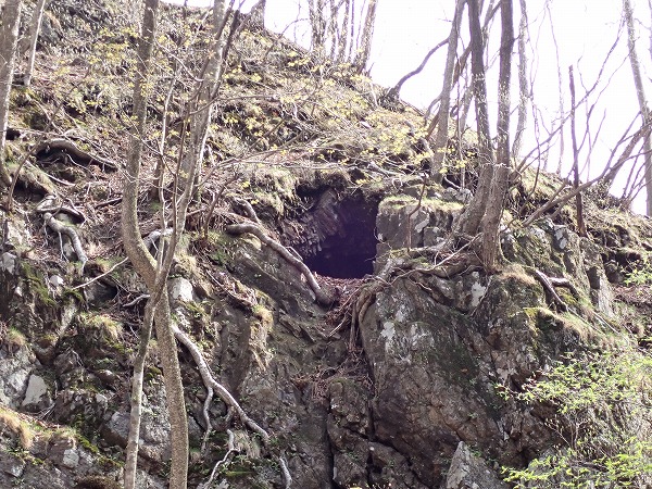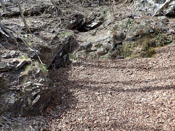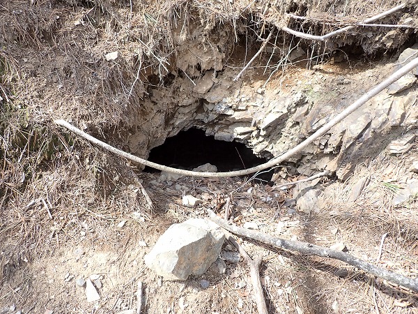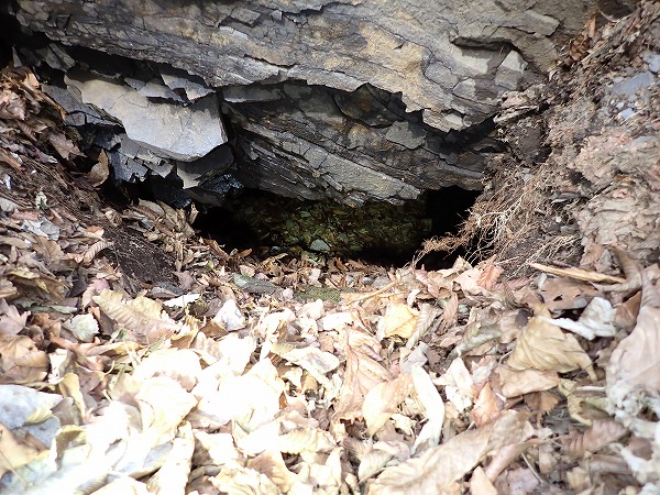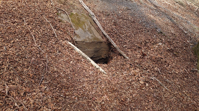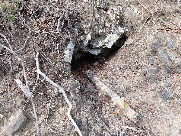 一番下には落ち葉に埋もれた坑口。