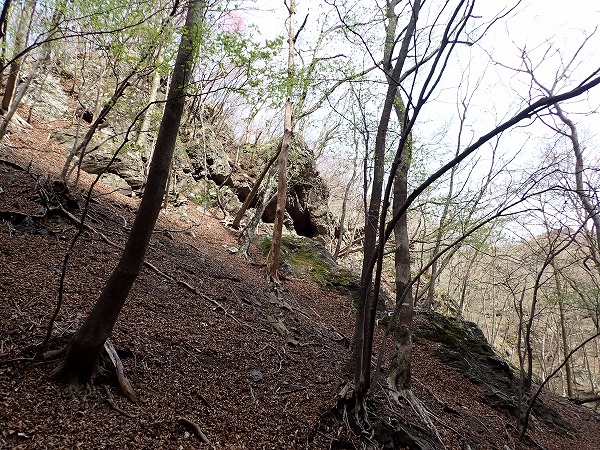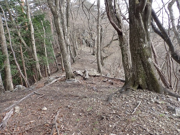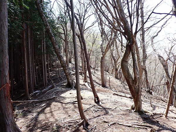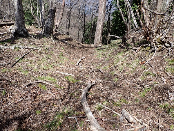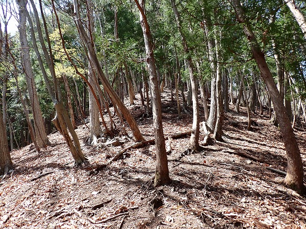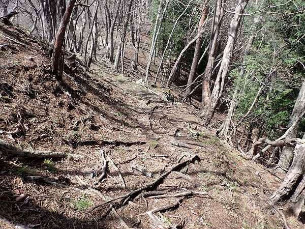 この尾根、画像では分かりにくいのですが、かなりの急斜面。