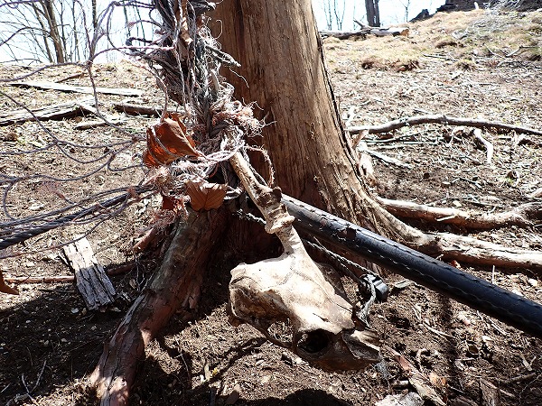 なぜ鹿頭かというと、鹿よけネットに絡んで死んだ鹿の頭骨が残されているからです。