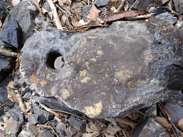 削岩機で開けた岩の破片か、壊れた石臼でしょうか。