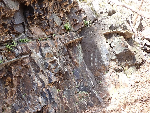 レールの有るマンガン採掘跡の確認後は昭和鉱山奥山坑(奥山鉱床)へと向かいます。