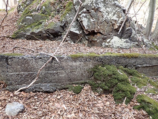 沢沿いには火薬庫跡らしき遺構。