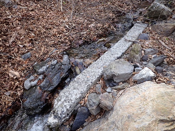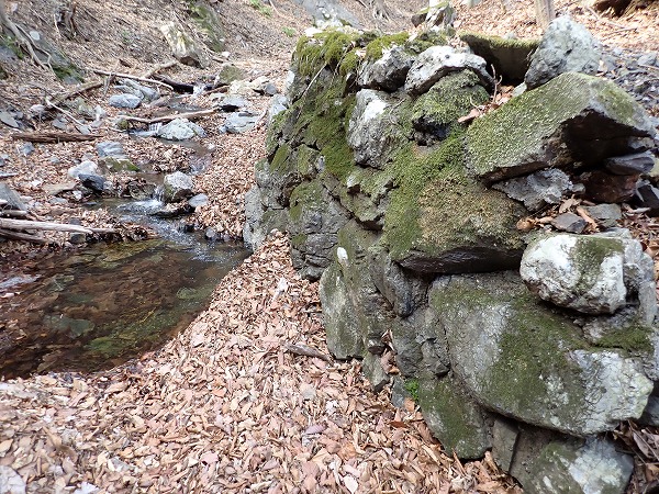 沢沿いには石積みと水路の跡。