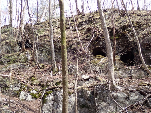 こちらも岩肌に多数の坑口が見られます。