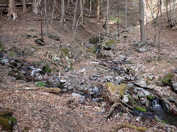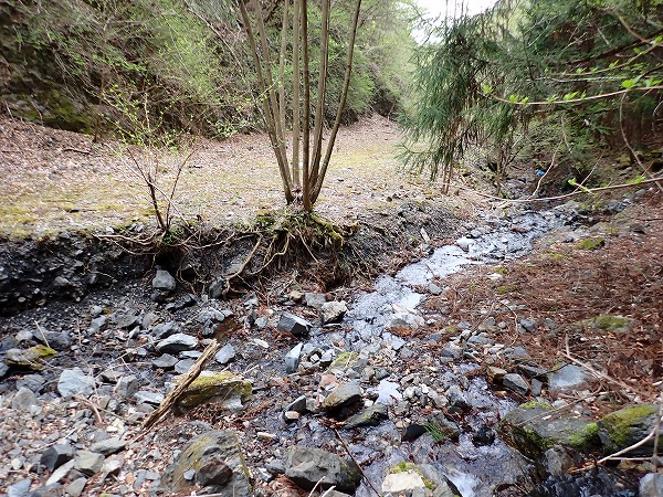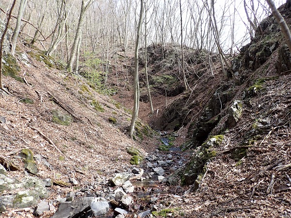沢に沿って登り、採掘エリアの反対側へ。