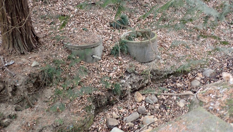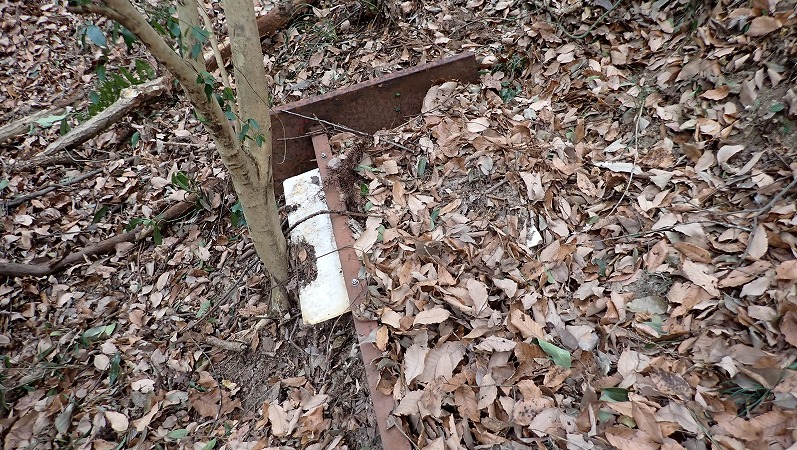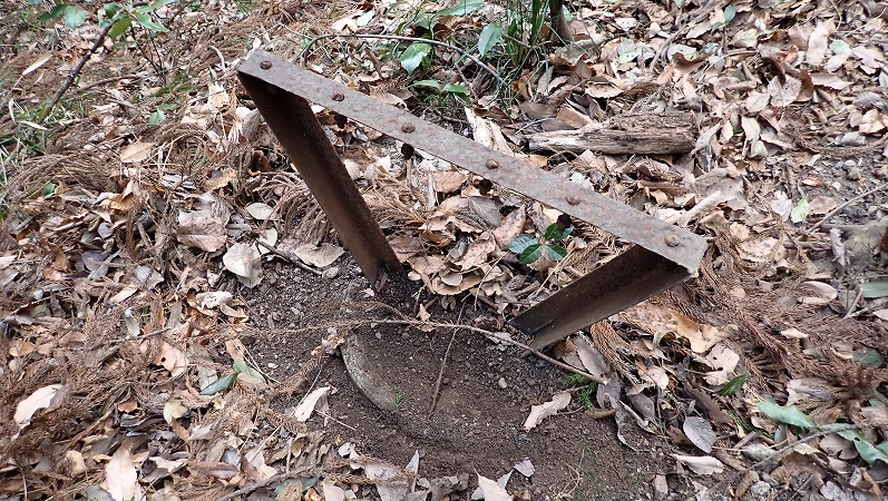 気になって掘ってみたら、根本がコンクリートで固められており、トロッコの枠組みでは無さそうでした。