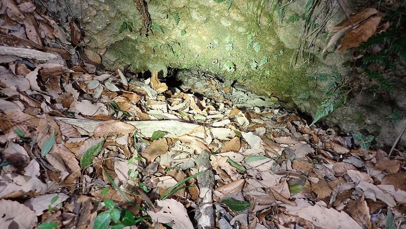 中は僅かながら隙間が有り、斜坑の様に下りながら奥に続いている感じです。